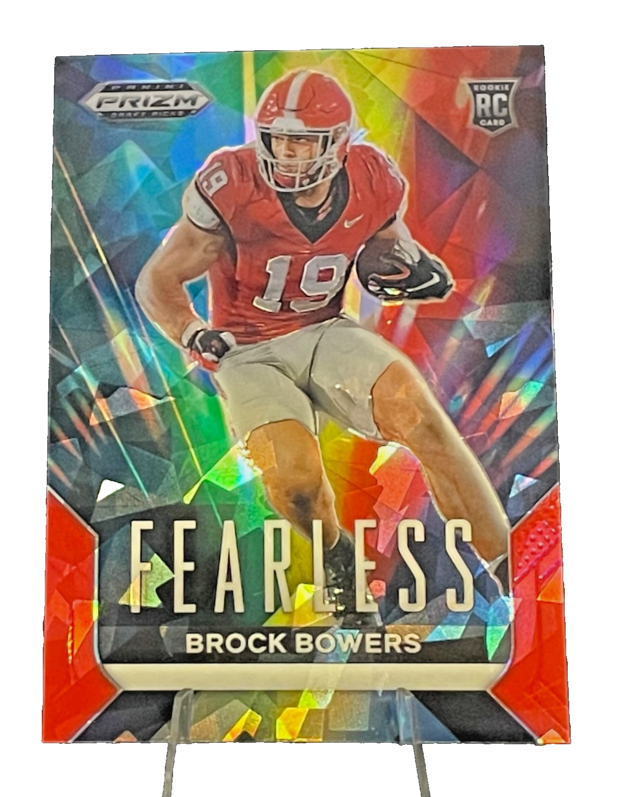 This stunning 2024 Panini Prizm Draft Picks Fearless insert features star tight end Brock Bowers with vibrant ICE Prizm refractor shine. A standout collectible for Raiders and Georgia Bulldogs fans alike! Card is in excellent condition and perfect for grading or adding to your PC.