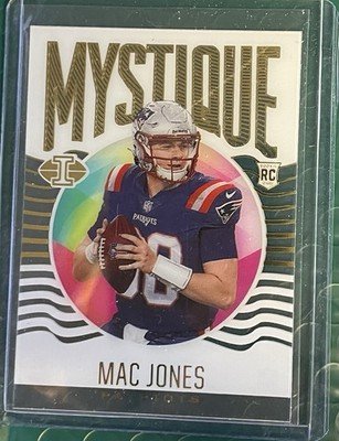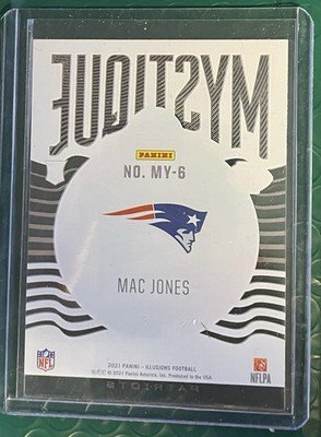 The 2021 Panini Illusions Mystique Mac Jones #MY-6 RC trading card is a standard-sized sports card featuring the National Football League (NFL) player Mac Jones