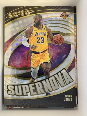 Elevate your sports card collection with the 2023-24 LeBron James Panini Revolution Supernova Insert. This stunning card showcases the Lakers' superstar in his element, captured in the dynamic design that Revolution is known for. As part of the base series, it holds a special place for fans and collectors alike, highlighting a piece of basketball history from the NBA Finals season.