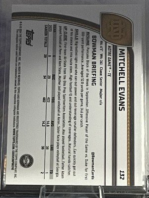 2024 Bowman U Chrome Mitchell Evans Blue Mini-Diamond 77/175 Notre Dame Irish