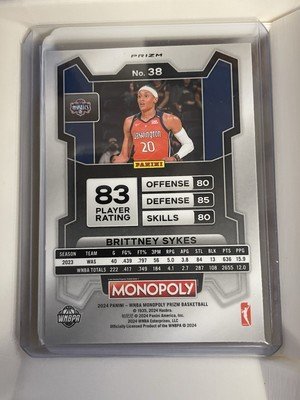 2024 Panini Monopoly Prizm WNBA BRITTNEY SYKES #38 FREE PARKING MYSTICS