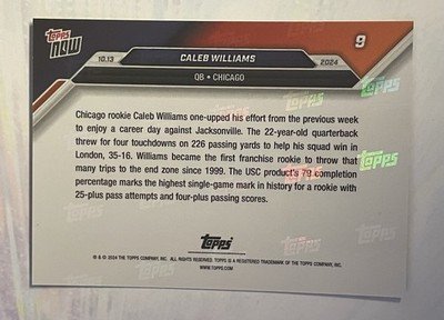 2024 Topps Now – Caleb Williams #9 /6573 (RC)