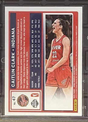 The product is a 2025 Donruss WNBA trading card featuring basketball player Caitlin Clark from the Indiana Fever. This non-autographed card is a part of the 2025 Donruss WNBA set.
