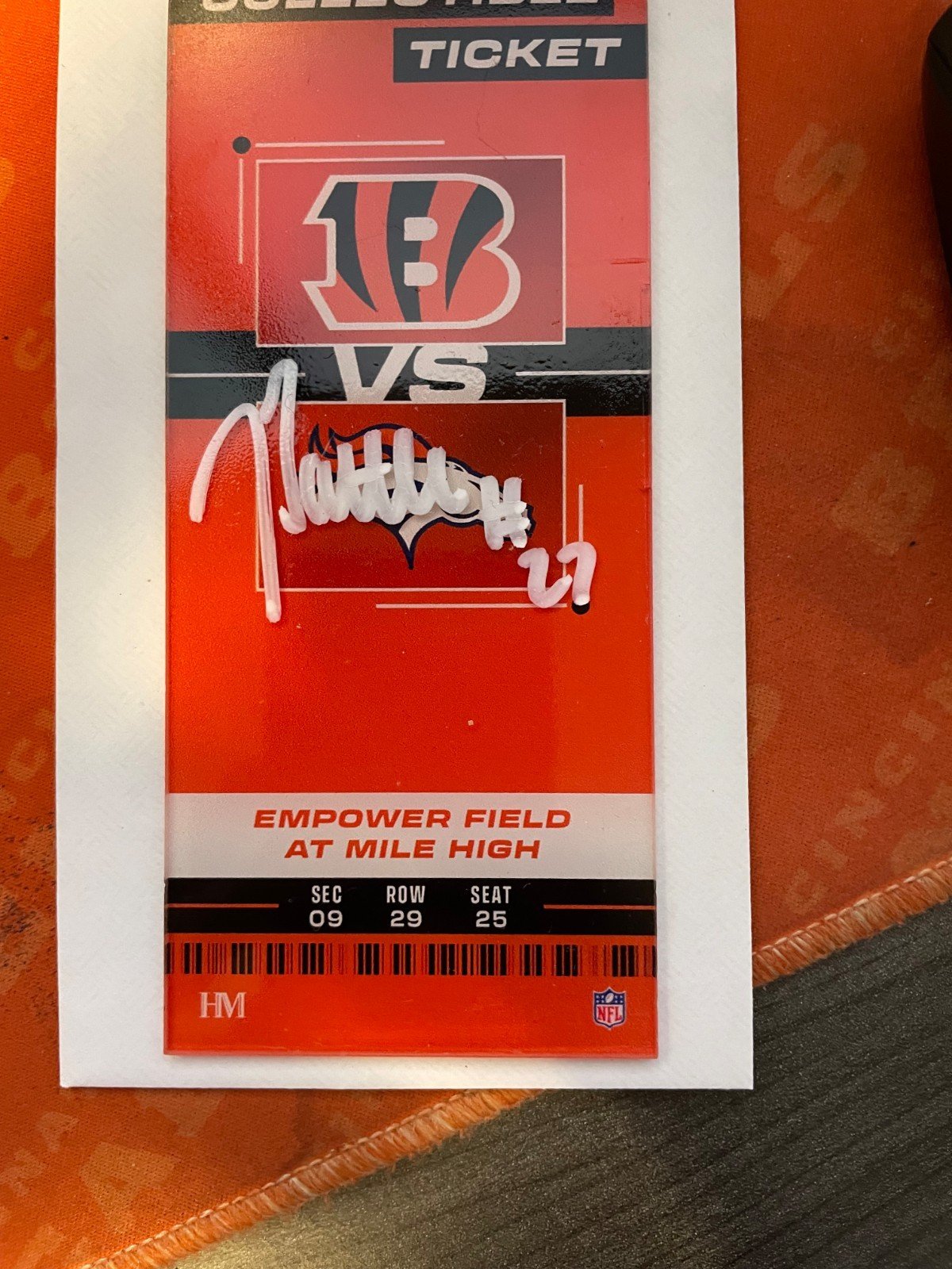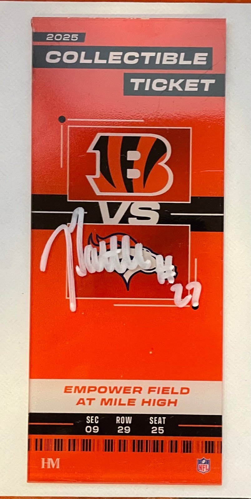 2025 Jordan Battle 2/2 Auto Collectible Ticket Cincinnati Bengals vs Broncos