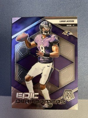 The 2025 Panini Mosaic Lamar Jackson Epic Performers Card #3 is a highly sought-after trading card featuring the talented quarterback of the Baltimore Ravens, Lamar Jackson. This Mosaic Prizm parallel variety card is part of the 2025 Panini Mosaic set, highlighting Jackson's epic performances in the NFL. With its unique design and exclusive features, this card is a must-have for any collector or fan of football trading cards.