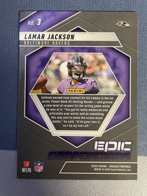 2025 Panini Mosaic Lamar Jackson Epic Performers Card #3 Mosaic Prizm – Ravens