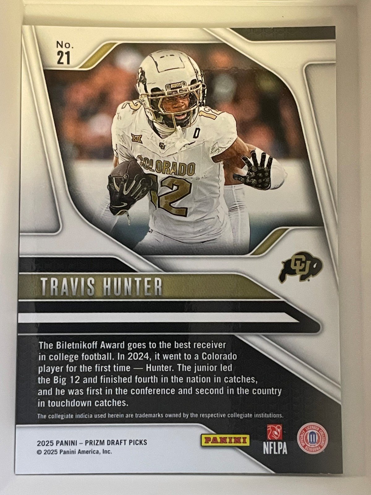 2025 Panini Prizm Draft Picks Silver Prizm #21 TRAVIS HUNTER Rookie Card RC