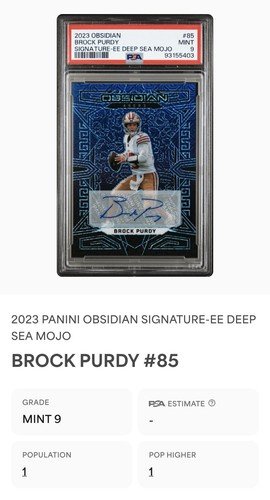 BROCK PURDY 2023 Obsidian 5/5 AUTO Deep Sea MOJO #85 đź’ŽPOP 1