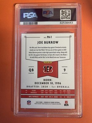 JOE BURROW 2020 PANINI CHRONICLES ROOKIE RC #PA1 PSA 10 GEM MINT! BENGALS LSU