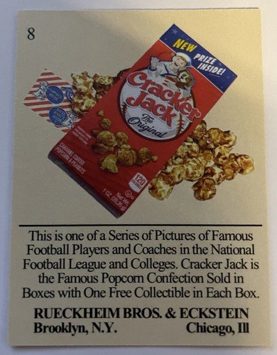 This Justin Herbert Cracker Jack trading card is a must-have for any football fan. The 2 1/4” x 3” card features the talented quarterback in his San Diego Chargers uniform, and is part of the 2022 collection. It is a great addition to any sports trading card collection, especially for fans of the National Football League (NFL). The card is manufactured by Cracker Jack and includes the card number 8. It is a rare find and perfect for collectors who want to add to their collection. Get your hands on this amazing card today!