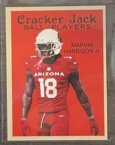 This is a rare and highly sought-after Marvin Harrison Jr RC 2024 Cracker Jack 2 1/4" x 3" Ball Players Card #211. As a football fan, you know the value of adding this card to your collection. It features the talented player in his Arizona Cardinals uniform and is made from high-quality card stock.